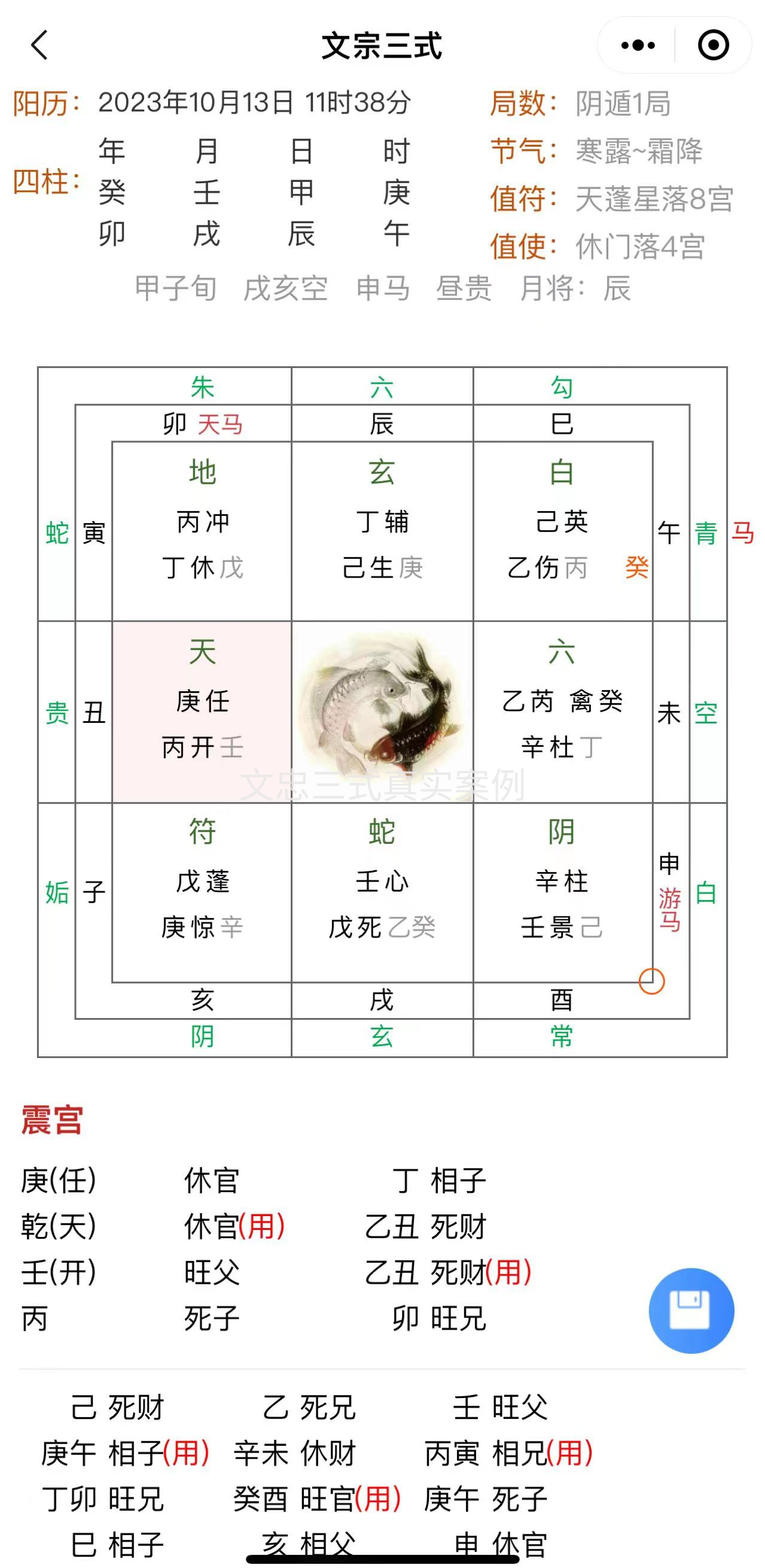 奇门遁甲对事物的模拟非常的形象精准,通过本例让我们共同体验和赞叹奇门遁甲的神奇与玄妙。
