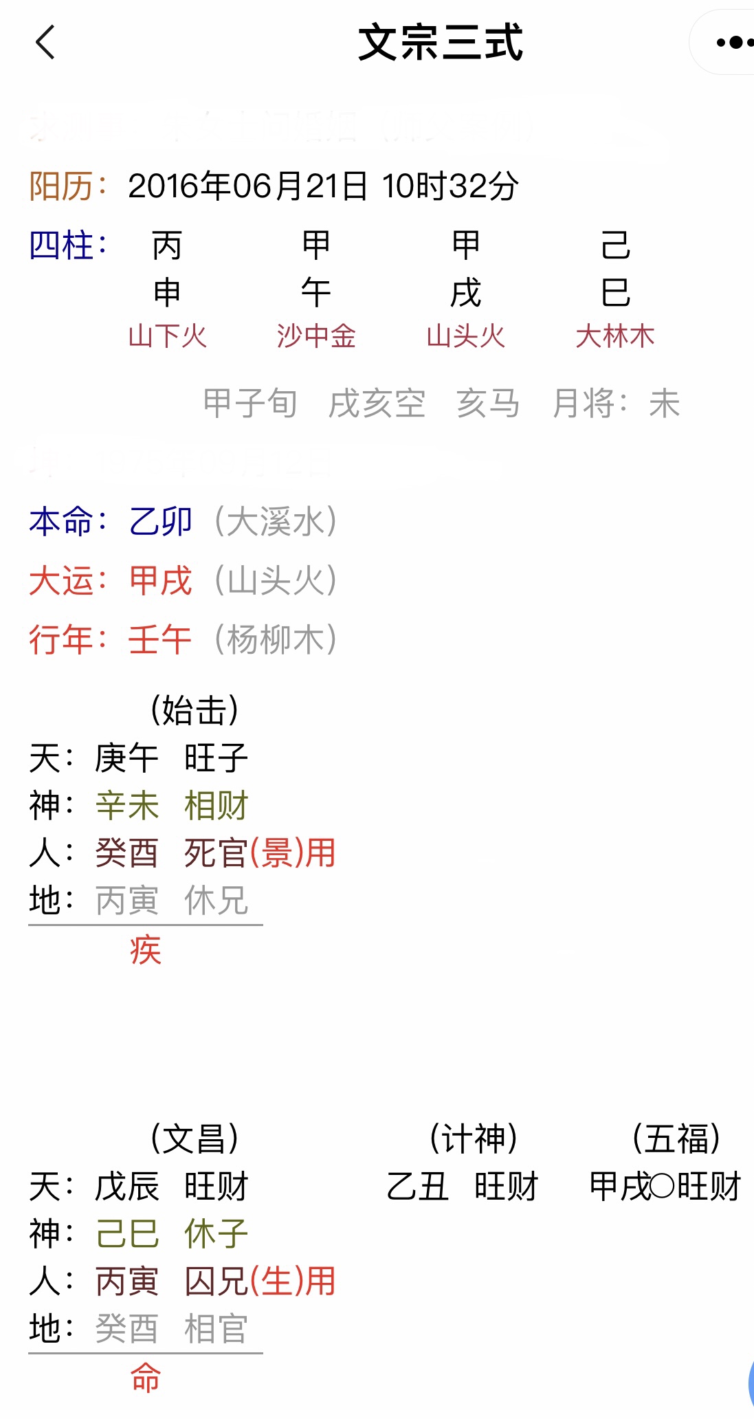 于是我起了一个文忠三式太一神数局,开口便道:"你的婚姻不顺,离过婚。"