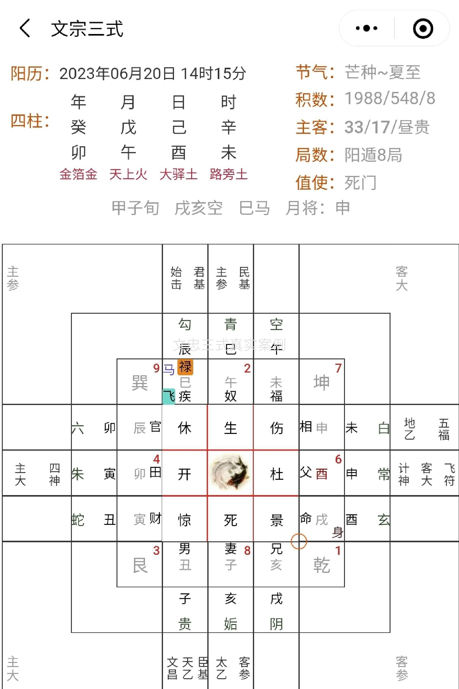 “好的,我这就帮您看,一会给您回信。“ 挂了电话,我起了一个文忠三式的太乙神数时局: