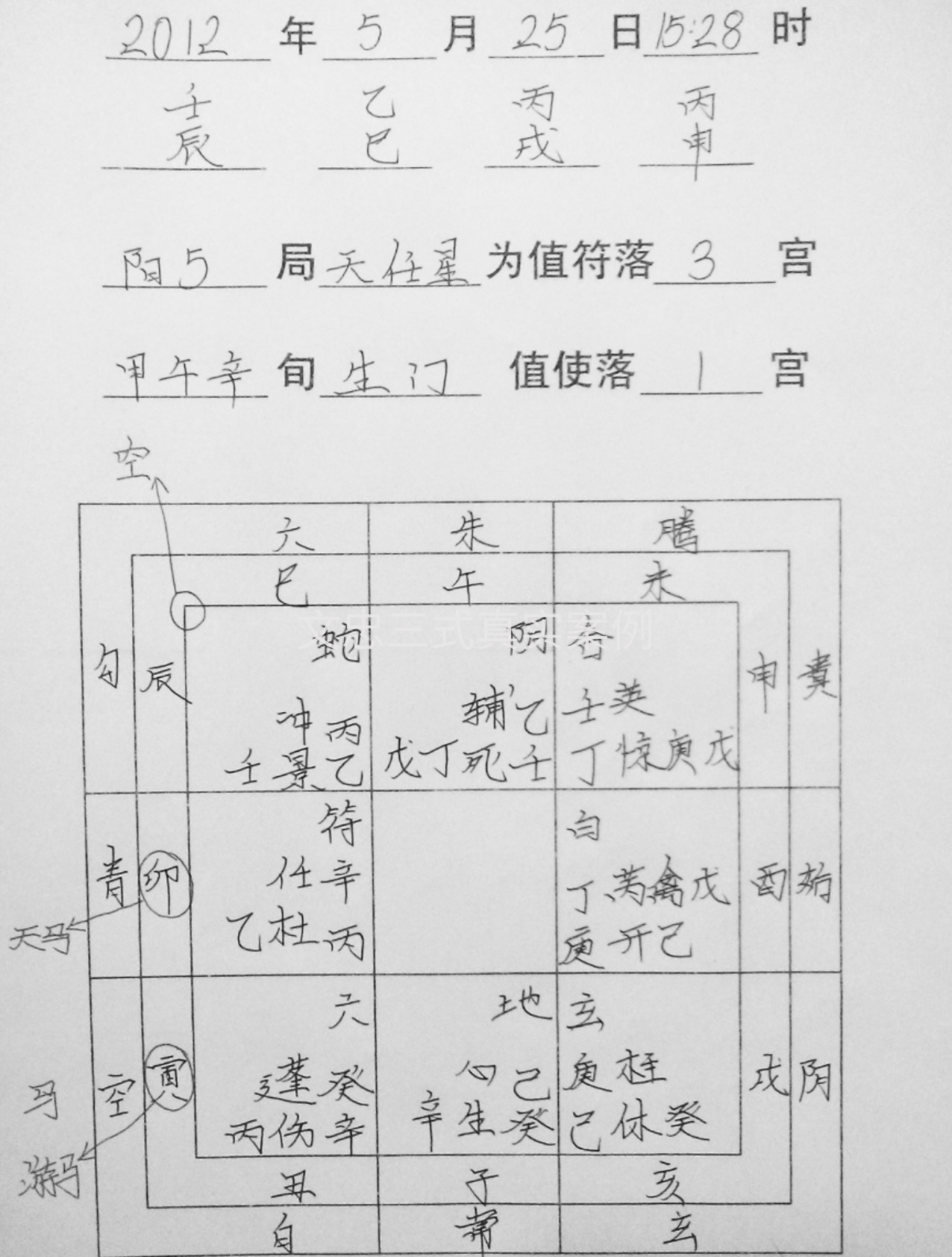 我听了后微微一笑道,"别急,我起个局帮你的朋友找找看吧!“随后在纸上起了一个文忠三式奇门遁甲局。